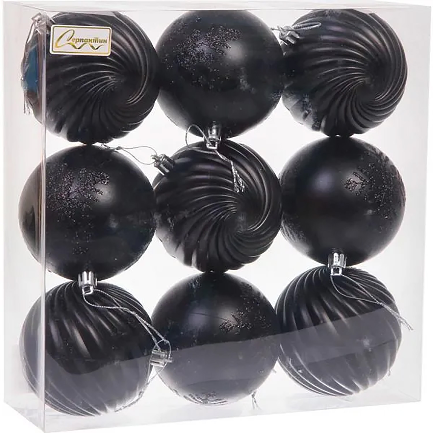 Новогодние шары "Изящные узоры" 8 см (набор 9 шт), Черный