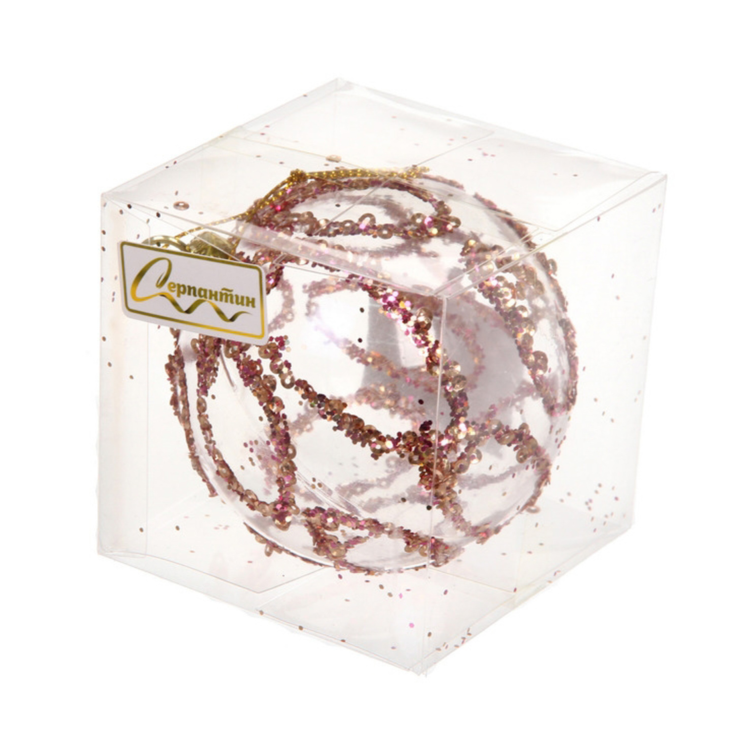 Новогодний шар "Мерцающий узор" 8 см, Розовое золото
