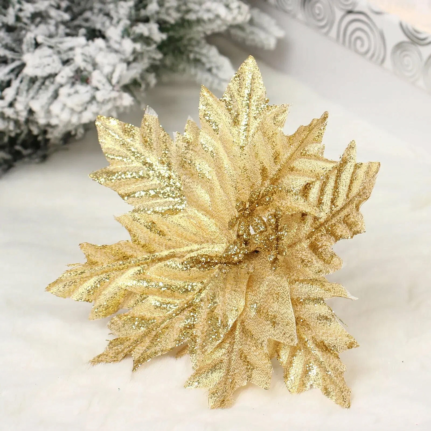 Украшение новогоднее "Пуансеттия - Мерцание" 17 см, Золото