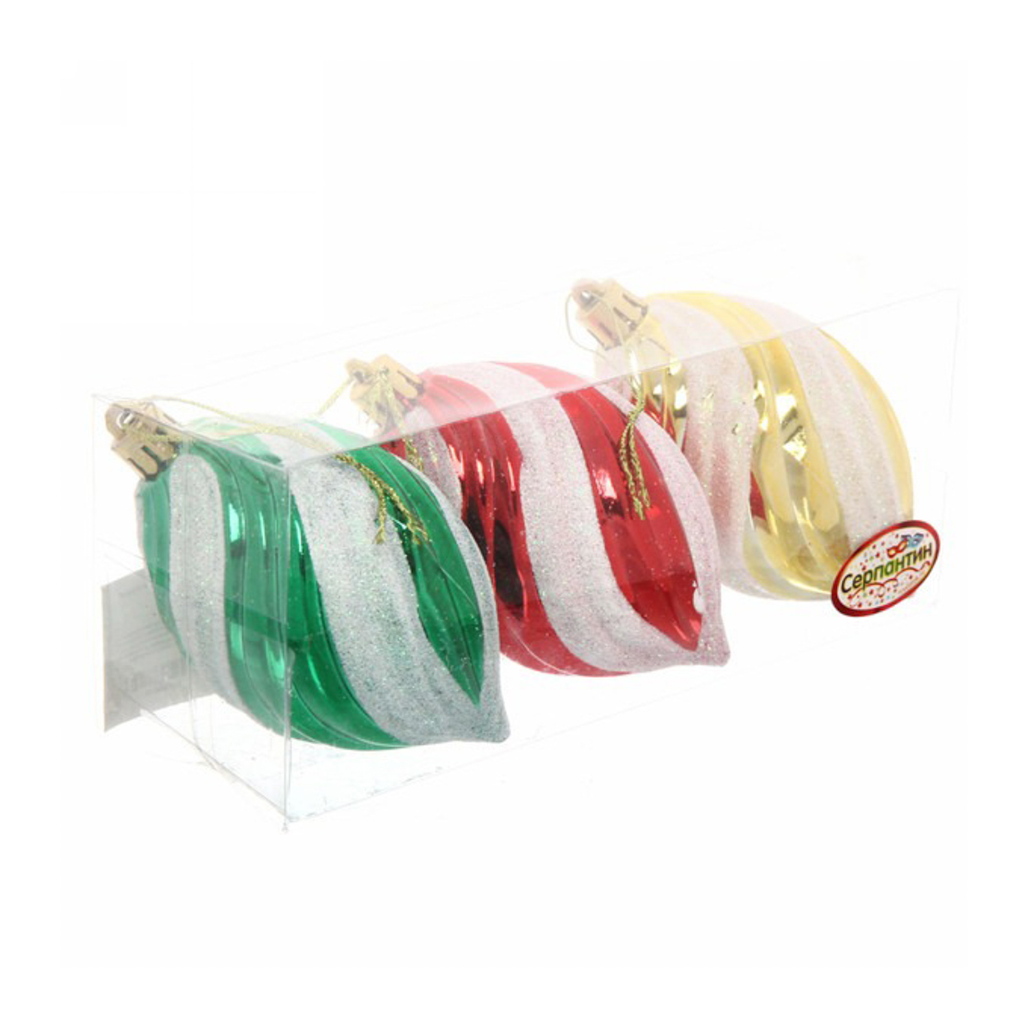 Ёлочные игрушки, набор 3шт, 8см"Капля снежная полоса", микс