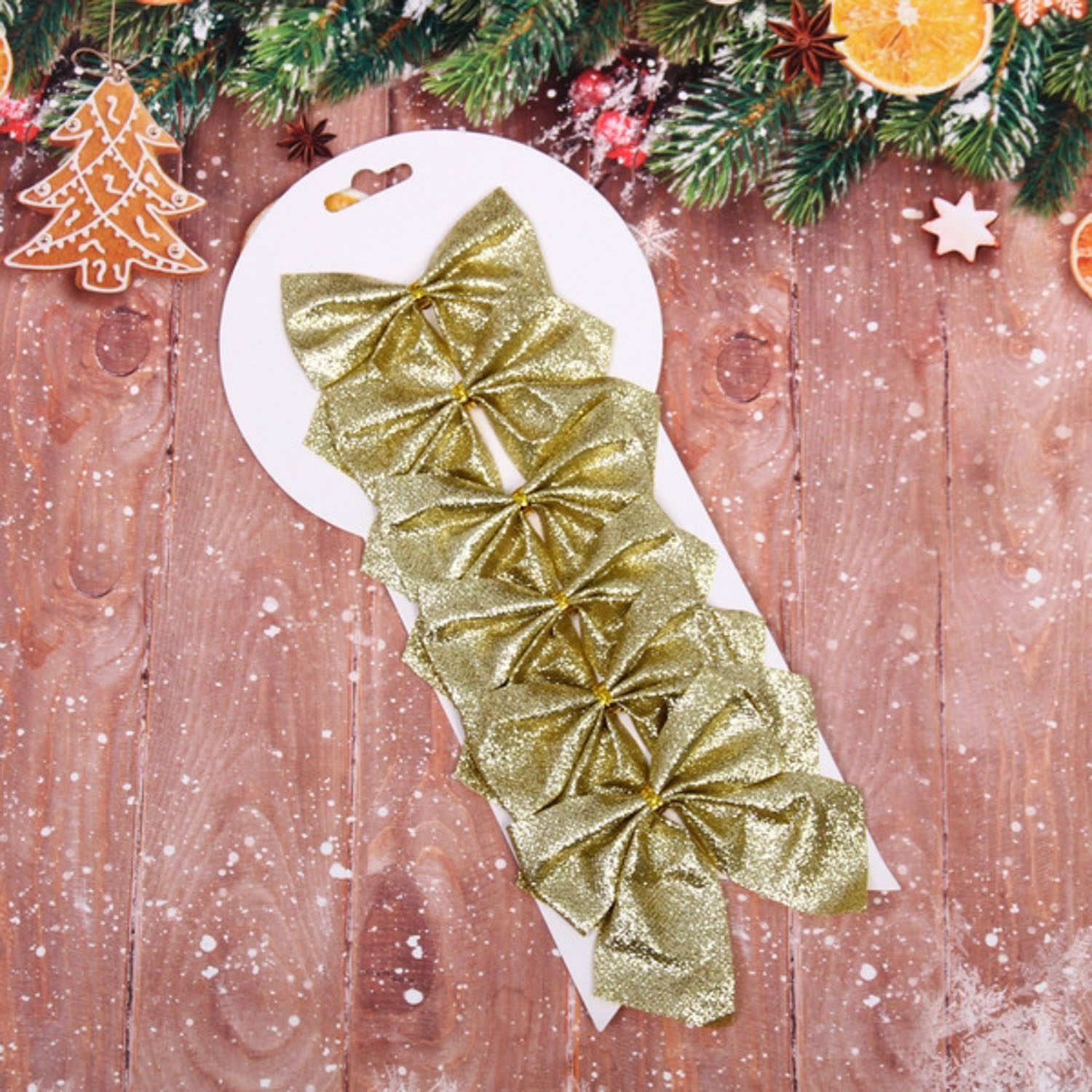 Набор бантов на елку «Зимнее очарование», 8.5х9 cм, 6 шт., золото