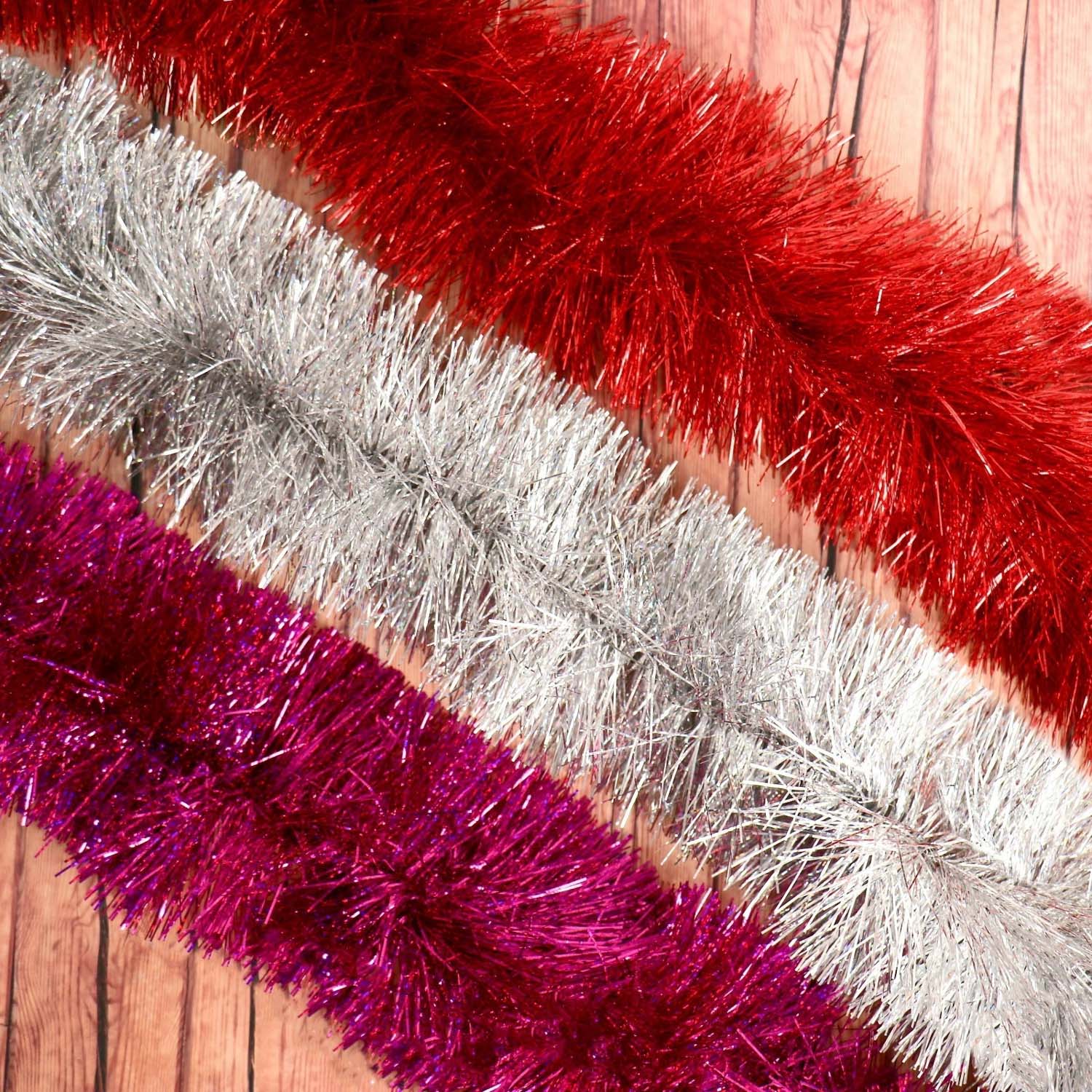 Бусы на елку Серпантин «Снежинки», 200 см, красный