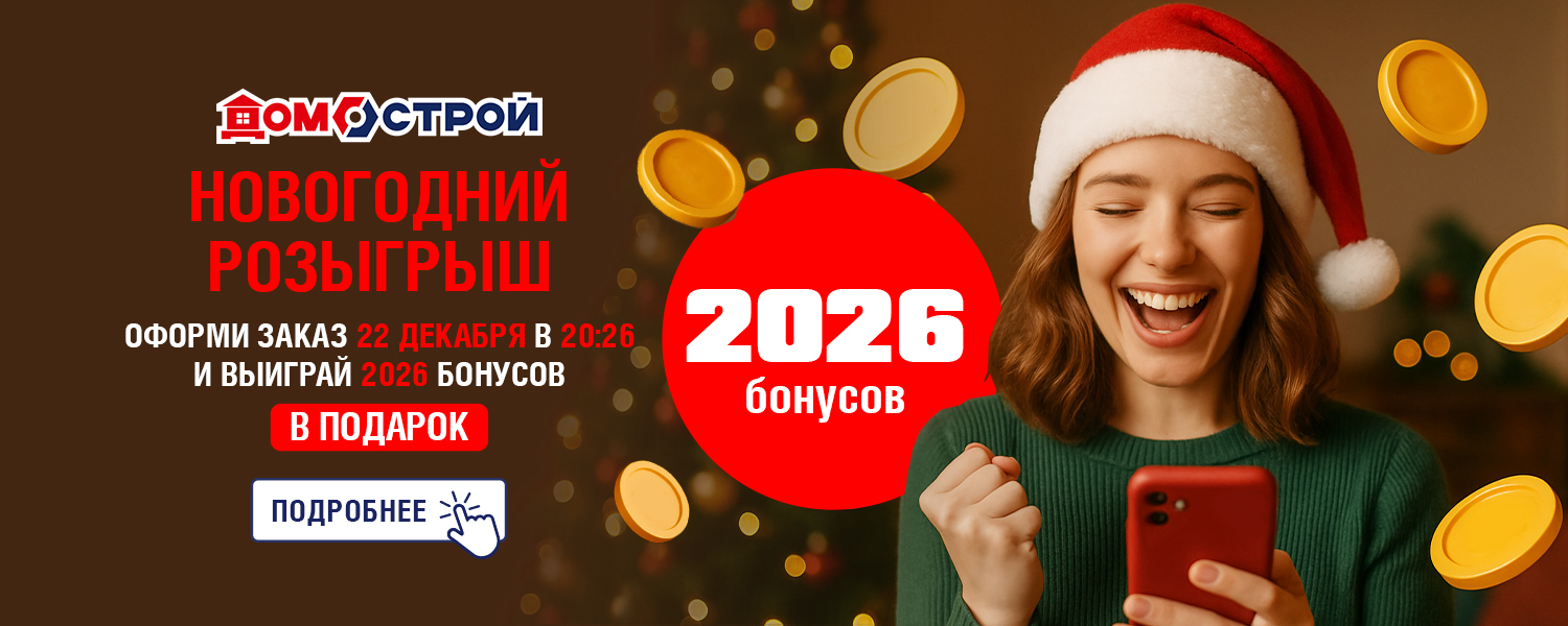 Новогодний розыгрыш от ДомоСтрой. Пусть Новый год начнётся с приятных сюрпризов! Мы разыгрываем 2026 бонусов среди покупателей на сайте — это ваш шанс сделать праздничные покупки ещё выгоднее.